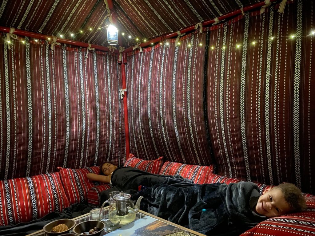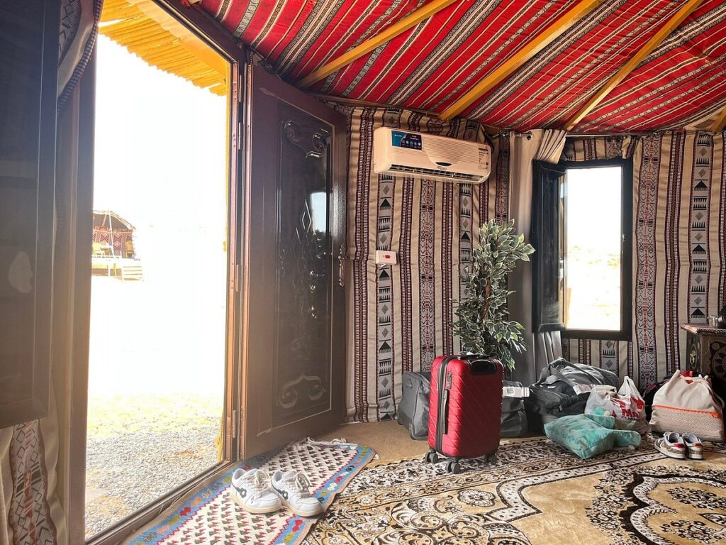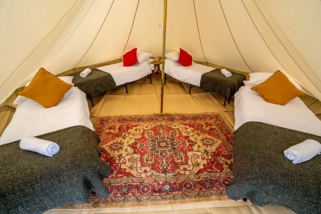 Die Zelte sind luxuriöse Bedouinen-Refugien mit kunstvollen Dekorationen. Jedes verfügt über komfortable Betten mit feiner Bettwäsche, Sitzgelegenheiten und ein privates En-Suite-Bad mit heißer Dusche.
