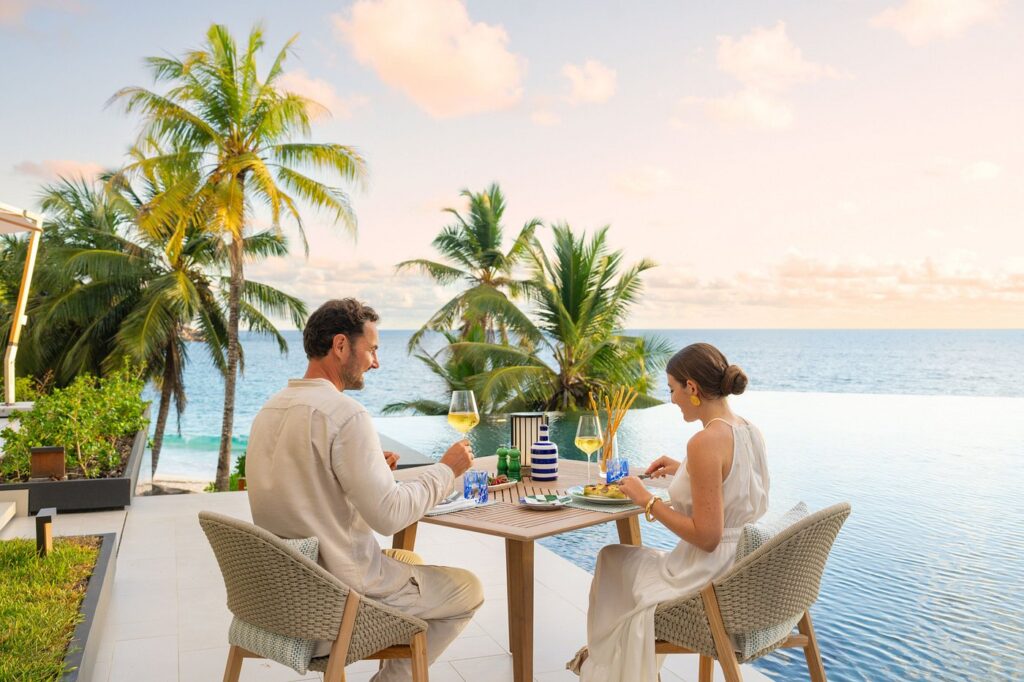 Tauchen an Riffen, Segeln, Blue Safari auf dem Ozean, Tennis und Padel, ein Surf Simulator, Yoga und ein fünfundzwanzig Meter Pool, Pfade durch das Grün und goldene Sonnenuntergänge am Strand.