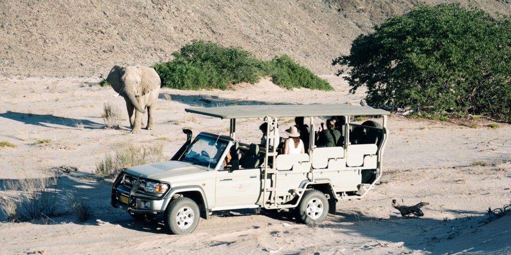Pirschfahrten zu Wüstenelefanten und Löwen, geführte Walks in trockenen Flussbetten, Fahrten durch Schluchten, Picknicks im Schatten, Sternbilder wie Laternen.