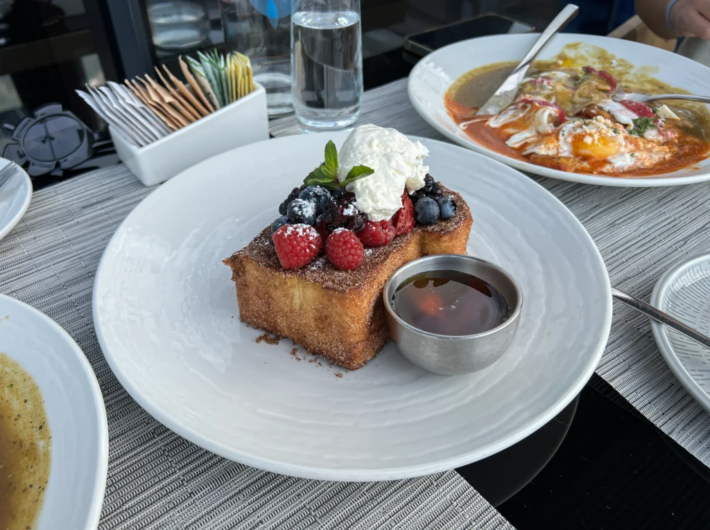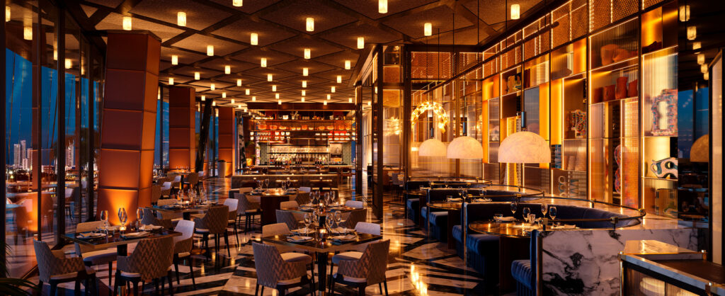 Das Hauptrestaurant SAMOS bietet global inspirierte Küche, einschließlich Gerichten aus dem östlichen Mittelmeerraum und handgefertigten lokalen Favoriten. Der Fokus liegt auf frischen, qualitativ hochwertigen Zutaten. Die Essenserlebnisse werden durch die beeindruckende Aussicht ergänzt.
