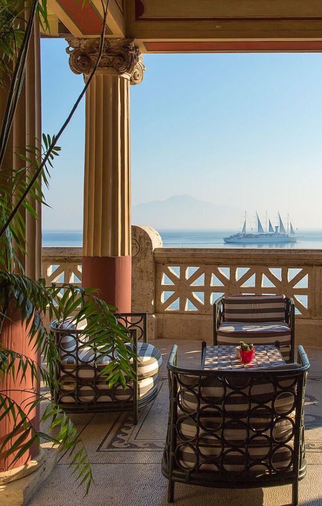 Eine luxuriöse Ferienvilla für die römischen Kaiser, das Bellevue Syrene ist eine Oase des Friedens für die europäischen Herrscher wie Ludwig II. Von Bayern, Vittorio Emanuele III., Paul von Griechenland, Kaiserin Eugénie de Montijo, ein Ort voller Inspiration für Künstler und Intellektuelle wie Turgenev, Jorge, Marguerite Yourcenar.