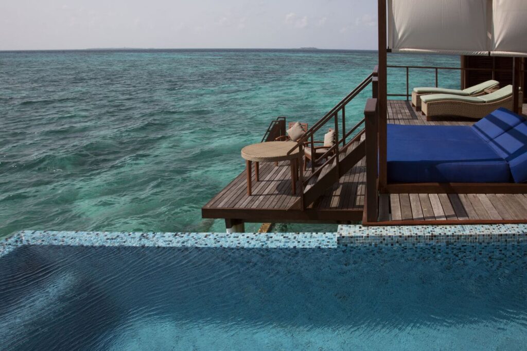 – Escape Water Villa (144 m2 auf Stelzen in die Lagune gebaut mit separatem Wohnzimmer)