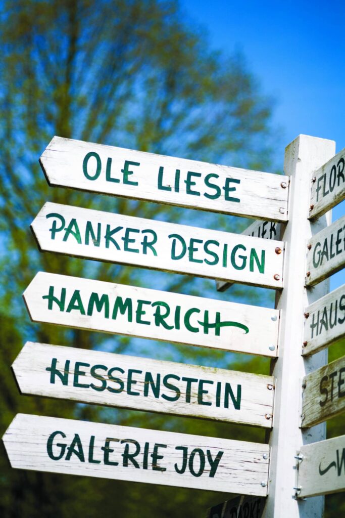 Doch so idyllisch es scheint, Gut Panker ist kein Museumsdorf, sondern eine aktive Guts- beziehungsweise Dorfgemeinschaft. 80 Menschen leben hier, ein großer Teil arbeitet sogar im Dorf. Seit 14 Jahren gibt es Läden und Galerien. Das Angebot reicht von Antiquitäten und individuell gefertigten Möbeln über klassische und moderne Wohnaccessoires, Kunsthandwerk und Glaskunst, Duftrosen und Gartenaccessoires, edle Weine des Weingutes Prinz von Hessen, Literatur rund um das Thema “Genuss” bis hin zu Schmuck und der in Panker entstandenen Modemarke emmas®.