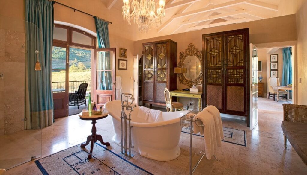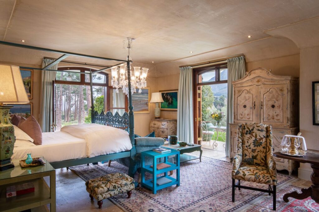 Jedes Zimmer im La Residence wurde von Liz Biden einzigartig gestaltet. Jedes hat sein eigenes Farbschema und seine eigene Design-Inspiration – von der exotischen Tibetan Suite mit ihren orientalischen Antiquitäten und satten Orangetönen bis zum blau-gelben Chambre Bleu mit seinen provenzalischen Antiquitäten, Samt und Seide.Im Mittelpunkt des La Residence-Erlebnisses steht die unglaubliche Gastronomie des Franschhoek-Tals. Großartiges Essen und erlesene Weine sind an der Tagesordnung, aber die natürliche Schönheit der Umgebung bietet sich für eine Reihe von vielfältigen Erlebnissen an, von Wandern und Radfahren bis hin zu Kunstgalerien, Festivals und Automobilmuseen.