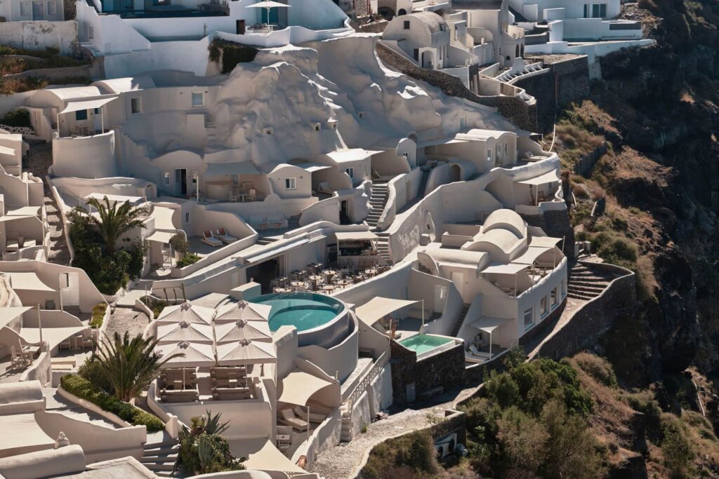 Mystique ist ein beliebtes Ziel für Flitterwochen und romantische Rückzugsorte. Die 41 Suiten und Villen, zwei Swimmingpools, ein asiatisches Spa sowie ein modernes Fitnessstudio sind durch gepflasterte Wege miteinander verbunden und bieten einen unvergleichlichen Panoramablick auf das Meer und den aktiven Vulkan, der die Landschaft dieser außergewöhnlichen Insel geprägt hat. Die im Höhlenstil erbauten Suiten und Villen aus Naturstein verfügen über abgeschiedene Terrassen mit Blick auf die tiefblaue Ägäis und den Vulkan. Jede Unterkunft ist mit viel Liebe zum Detail eingerichtet, wobei lokale Materialien wie Treibholz und Stein im Vordergrund stehen.