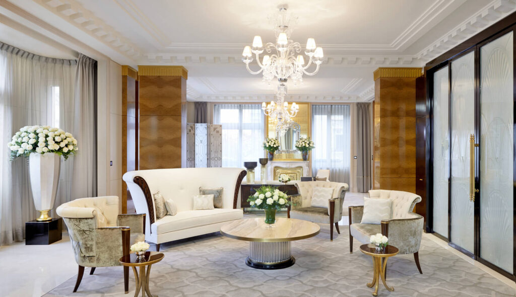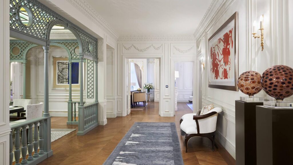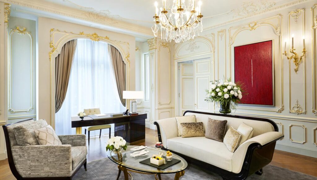 Die Gestaltungsmerkmale von Schlichtheit und schicker Eleganz spiegeln sich in den einzigartigen Zimmern wieder. Auf Anfrage sind Zimmer mit Verbindungstür verfügbar, damit Sie mehr Platz und Privatsphäre haben. Die für den modernen Luxusreisenden gestalteten Gästezimmer gehören zu den größten in Paris und sind mit modernster Technologie ausgestattet. Jedes Zimmer ist wie ein Apartment gestaltet und verfügt über einen Sitzbereich, einen separaten begehbaren Ankleideraum mit geräumigem Gepäckraum und einen Schminktisch.