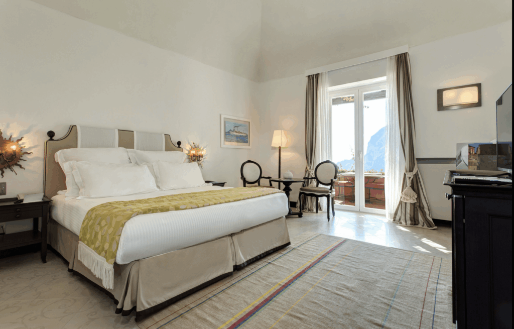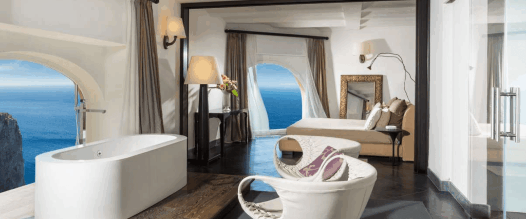 Wie die legendären Villen Capris, die, vor neugierigen Blicken geschützt, aufs Meer schauen, bieten auch die Junior Suiten von Punta Tragara, Interpreten raffiniertesten Designs, königliche Räumlichkeiten, teils auf zwei Ebenen, mit separatem Tag- und Nachtbereich und wundervollen Terrassen mit Meerblick . Der unendliche Horizont spiegelt sich auch in der Herrlichkeit der Bäder wider.