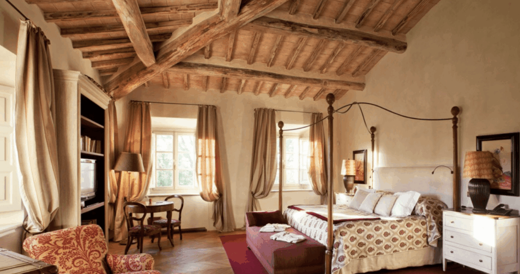 Die geräumigen Suiten und Villen des Resorts werden von sanften toskanischen Farbtönen erwärmt und bieten außergewöhnlichen Komfort und die Möglichkeit, ein Gebiet von außergewöhnlicher natürlicher Schönheit in einem Rahmen von zurückhaltender, kultivierter Raffinesse zu genießen. Die 23 Suiten befinden sich in den Gebäuden des Borgo selbst und strahlen Harmonie mit antiken Möbeln, echten Textilien und handwerklichen Stücken aus.
