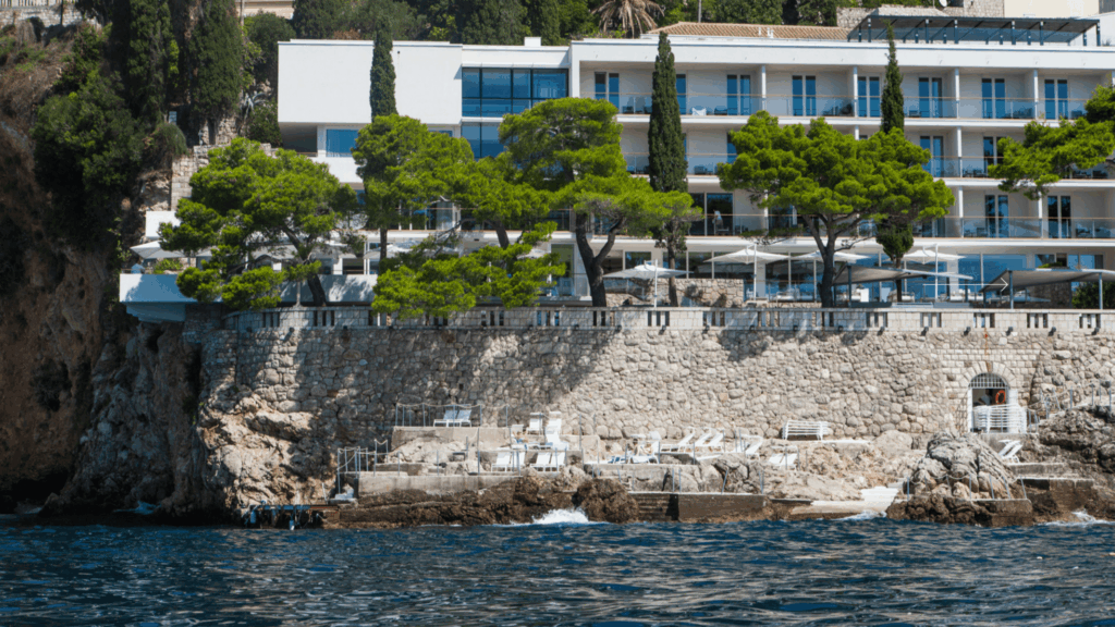Die Villa Dubrovnik befindet sich in den felsigen Klippen am geheimnisvollsten Abschnitt der dalmatinischen Küste und ist ein stilvoller Rückzugsort für Gäste, die luxuriöse Privatsphäre und erstklassige Gastfreundschaft suchen. Das Hotel liegt unterhalb einer Straße und ist von Seekiefern umgeben. Es befindet sich am östlichen Rand von Dubrovnik an der dalmatinischen Küste. Die Unterkunft befindet sich etwas mehr als 1,6 km von den mittelalterlichen Mauern entfernt, die die Altstadt der Stadt schützen. Der Strand Sveti Jakov, einer der malerischsten Badeplätze der Region, ist nur einen kurzen Spaziergang entfernt. In der Nähe finden Sie den Aussichtspunkt im Orsula Park mit spektakulärem Blick auf die winzige Bucht, die Insel Lokrum, die Stadt und darüber hinaus.