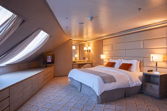 Alle Unterkünfte sind Suiten – stilvoll, komfortabel und häufig mit privatem Balkon. Die Auswahl reicht von geräumigen Einstiegskategorien bis zu Grand Suiten mit großzügigen Wohnbereichen.