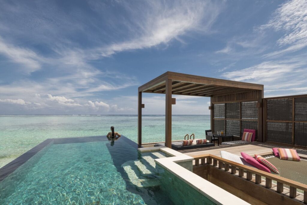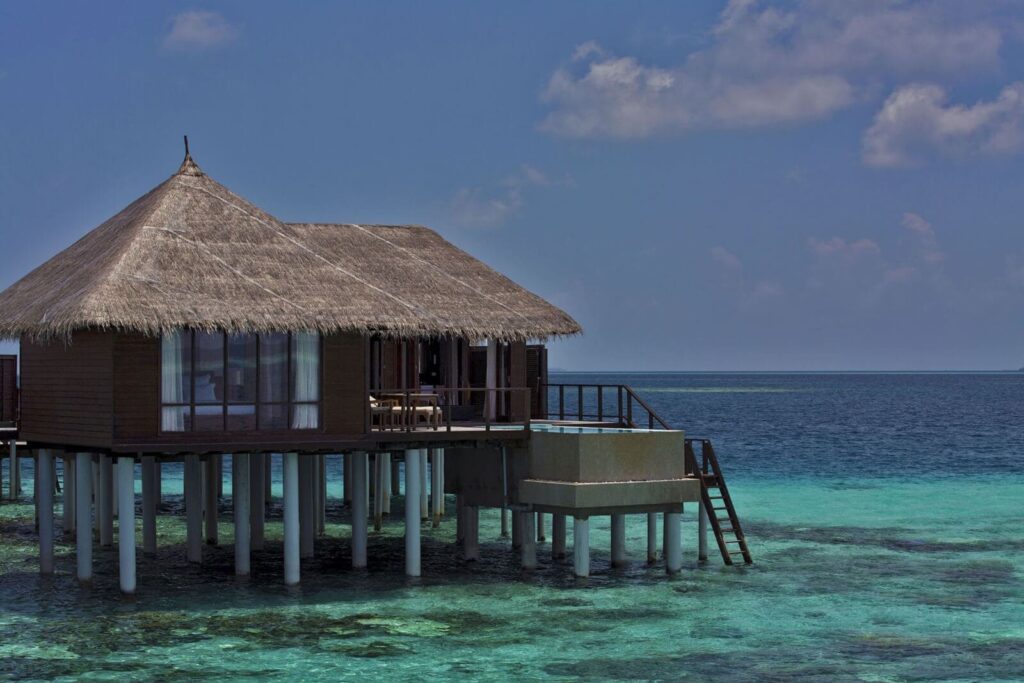 Das auf der Privatinsel Lankanfushi 20 Bootsminuten von Male entfernt gelegene einmalige Luxusresort verteilt sich auf 45 auf Stelzen in das Meer gebaute Villen.
