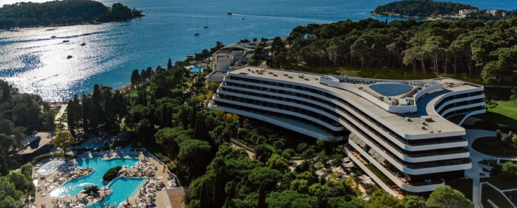 Rovinj – Wenn Sie das Hotel Monte Mulini betreten, wird der Panoramablick auf das blaue Meer und den Himmel, der sich von fast jedem Teil des Hotels aus erstreckt.