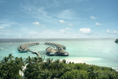 Das auf der Privatinsel Lankanfushi 20 Bootsminuten von Male entfernt gelegene einmalige Luxusresort verteilt sich auf 45 auf Stelzen in das Meer gebaute Villen.