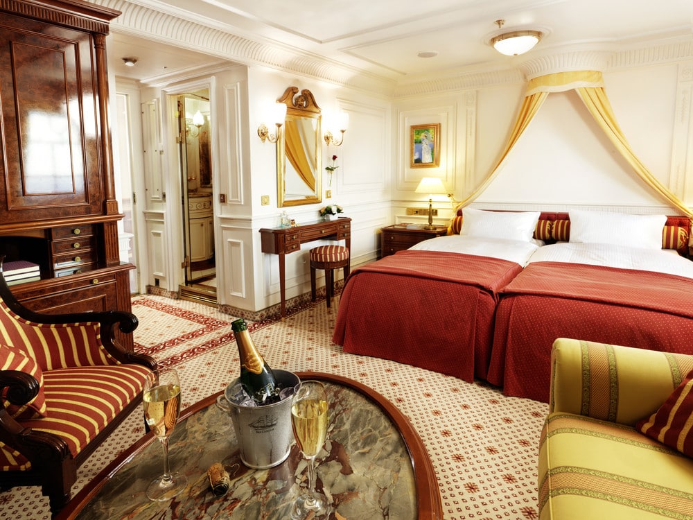 Alle Kabinen der SEA CLOUD haben ihren eigenen Charme. Wer es stilvoll elegant und behaglich modern mag, wohnt auf dem Lido- oder Promenadendeck in einer der 18 Außenkabinen, die behutsam in das Schiff integriert wurden. Die vielleicht maritimsten Kabinen sind vier liebevoll restaurierte ehemalige Offizierskajüten mit Ober-/Unterbett und einer Tür, die direkt auf das überdachte Promenadendeck führt. Auf dem Hauptdeck befinden sich die unvergleichlichen Originalkabinen, darunter auch die beiden berühmten Eignersuiten.