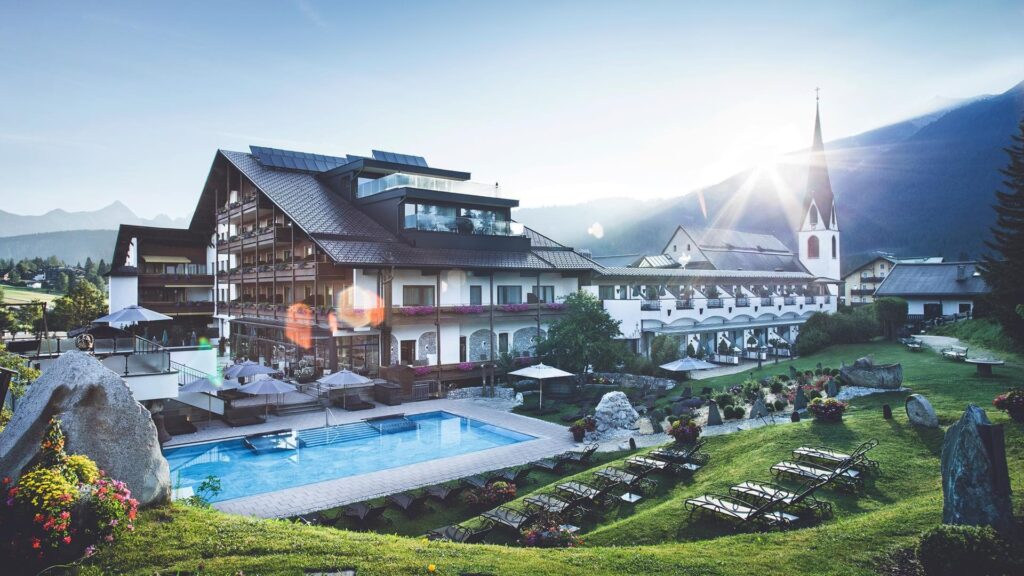 Telfs, Tirol – Eine Lage zum Schwärmen! Das Interalpen Hotel Tyrol liegt auf einem weitläufigen Hochplateau auf 1.300 m Seehöhe und in unverbauter Alleinlage